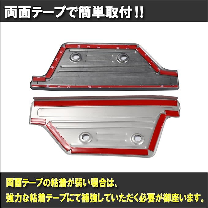 トヨタ ハイエース レジアスエース 200系 1-6型 に適合するサイドステップカバー 2個セットです。運転席と助手席のサイドステップに装着可能であり、装着することでドレスアップになりお洒落な外装にイメージチェンジできます。装着はとても簡単で、純正のクリップを利用して付属の両面テープにて貼り付けるだけで手間なく済ませることができます。材質はステンレス製で錆びの心配もなく長く使用でき、メッキ仕上げを施しておりますので光沢がある質感になっております。愛車のカスタマイズ 等にいかがでしょうか。
