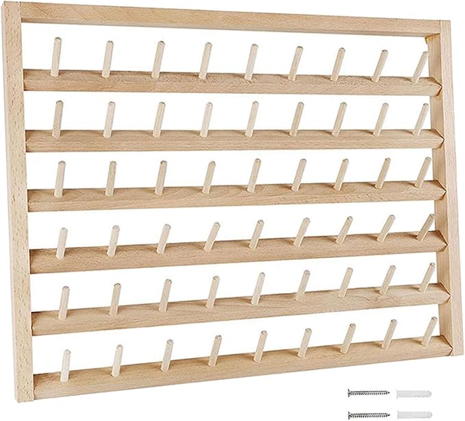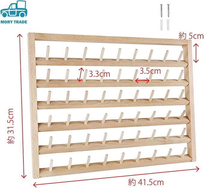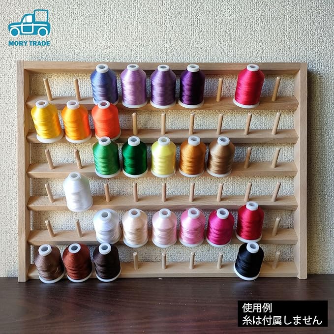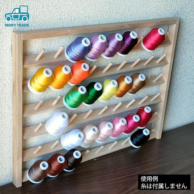 54個のボビンがかけられる糸巻ラック、糸立て台です。壁掛け式ですので場所を取らず、大量の糸を収納できます。