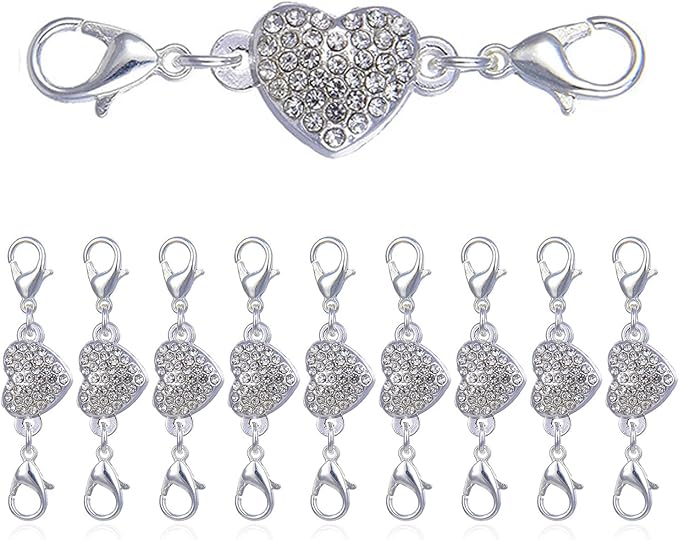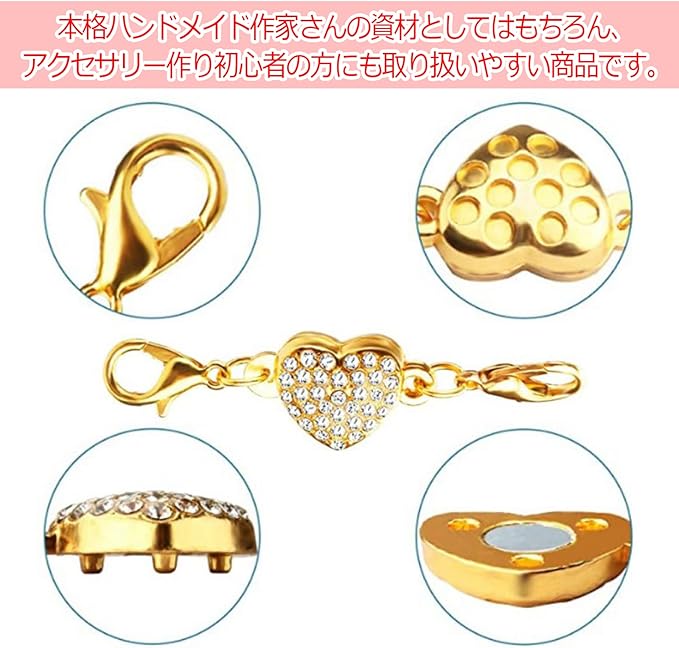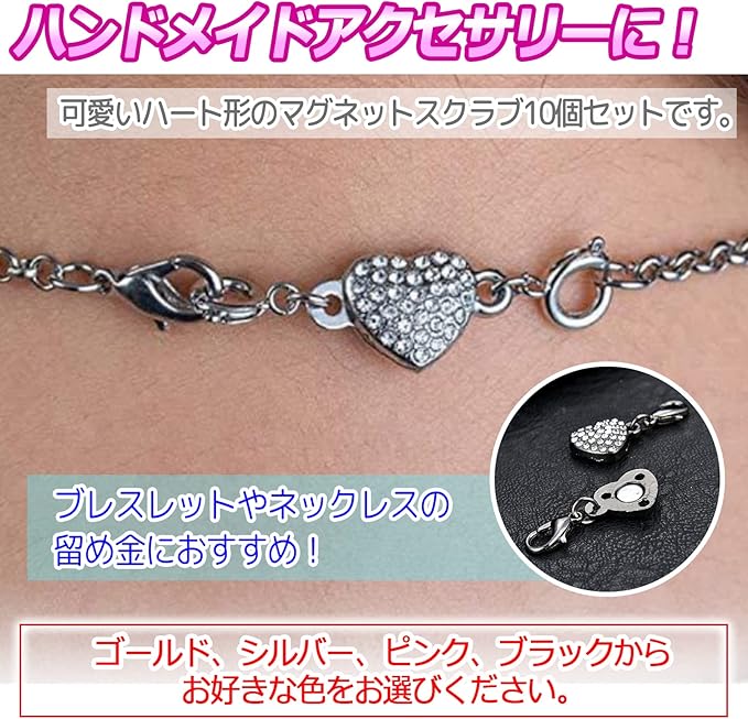 ハンドメイドアクセサリーに!可愛いハート形のマグネットスクラブ10個セットです。ブレスレットやネックレスの留め金におすすめ!ゴールド、シルバー、ピンク、ブラックからお好きな色をお選びください。