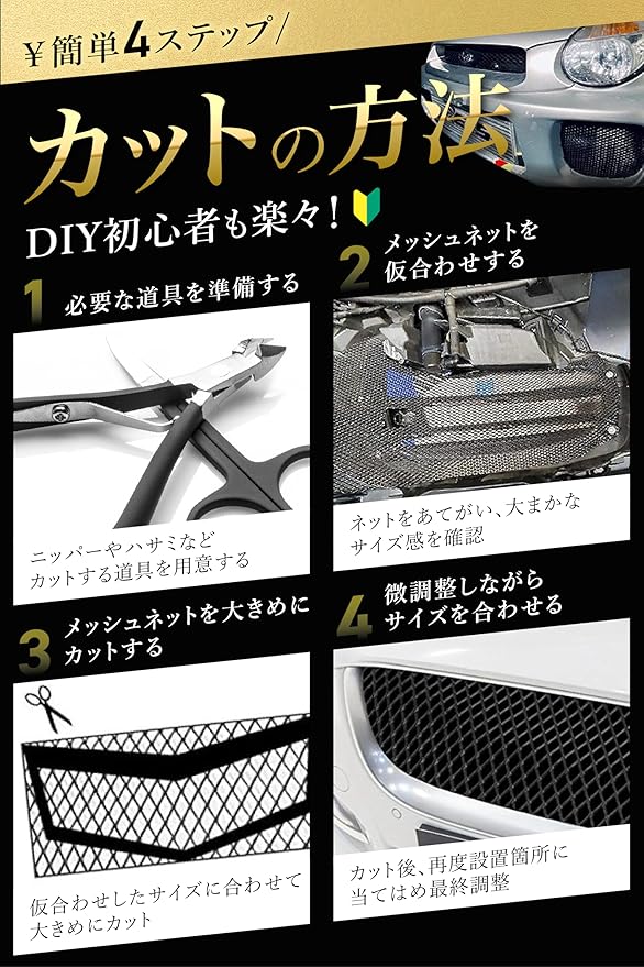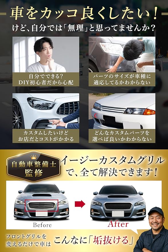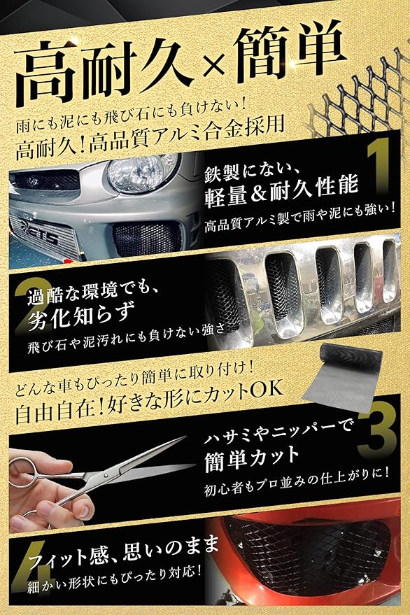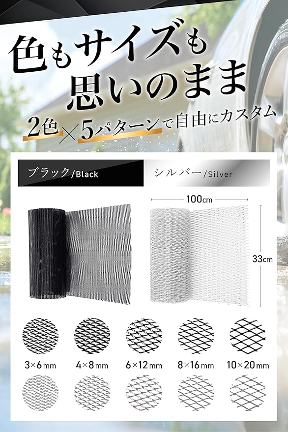 【フロントグリルネット】いまや車のデザインの核となっているのはフロントグリルです。世界総フロントグリルブームといっても過言ではありません。 フロントグリルをカスタムするだけで自分だけのスタイルをアピールすることができます。