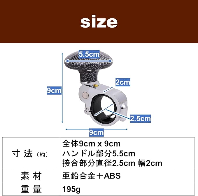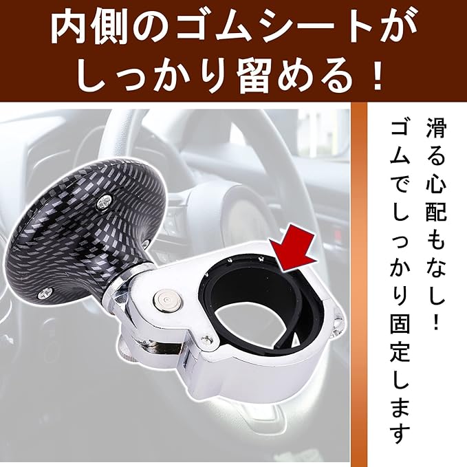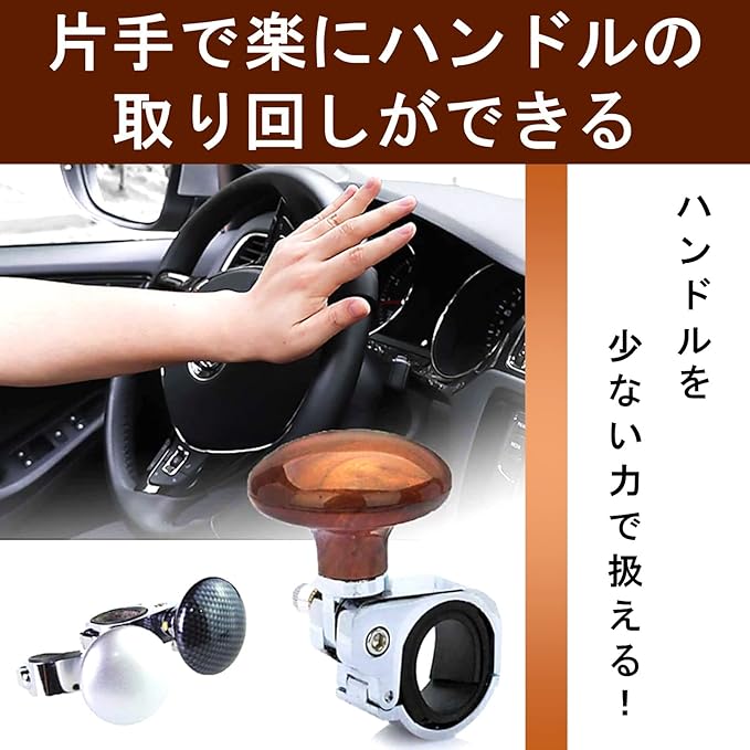 片手で楽にハンドルの取り回しができる、ハンドルスピンナー。障がいやケガなどで両手での運転が難しい方や大型車に乗られている方におすすめのアイテムです。