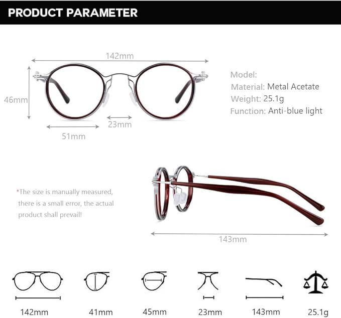 さまざまなフレーム カラー オプション: さまざまなフレーム カラー オプションから選択して、個人のスタイルに合わせてください。このフレームは、軽量で快適な素材で作られており、簡単に着用できます。