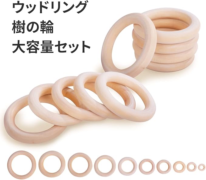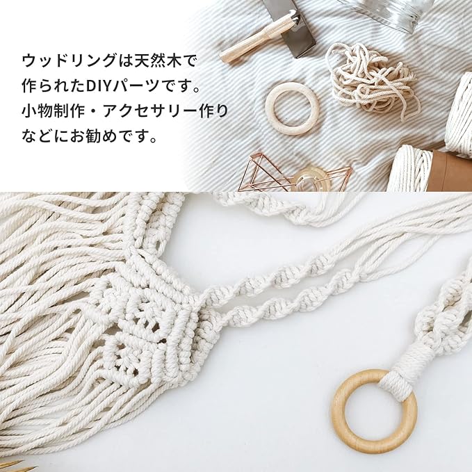 手触りが心地良い天然素材:天然木を使用したウッドリングは、滑らかで心地良い手触り。安全で自然な素材で、手作りアイテムに最適です。
