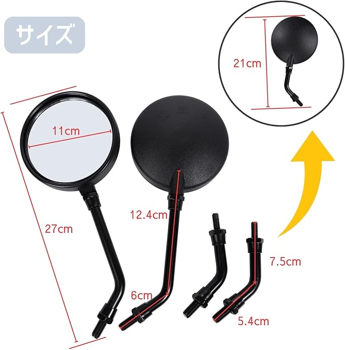ZII Z2 ショート ロング ミラー 左右セット 正ネジ M10 汎用 Honda kawasaki YAMAHA suzuki カブ モンキー ゴリラ GS400 など (ブラック) | oioioichan