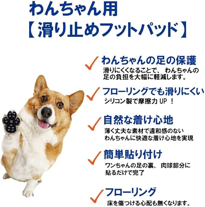 わんちゃんの足裏にはるだけで、底部のシリコンパッドが足の滑りを防ぎます。 足腰を弱まったワンちゃんや、老犬にもピッタリです。
