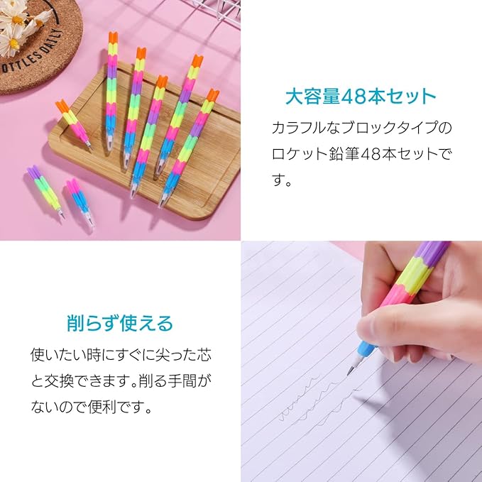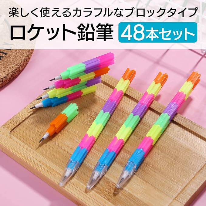 カラフルなブロックタイプのロケット鉛筆48本セットです。お子様から大人の方まで楽しい気分で使える鉛筆です。