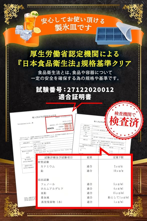【衛生法検査済】日本の規格に適合した安心してお使い頂ける製氷皿です。