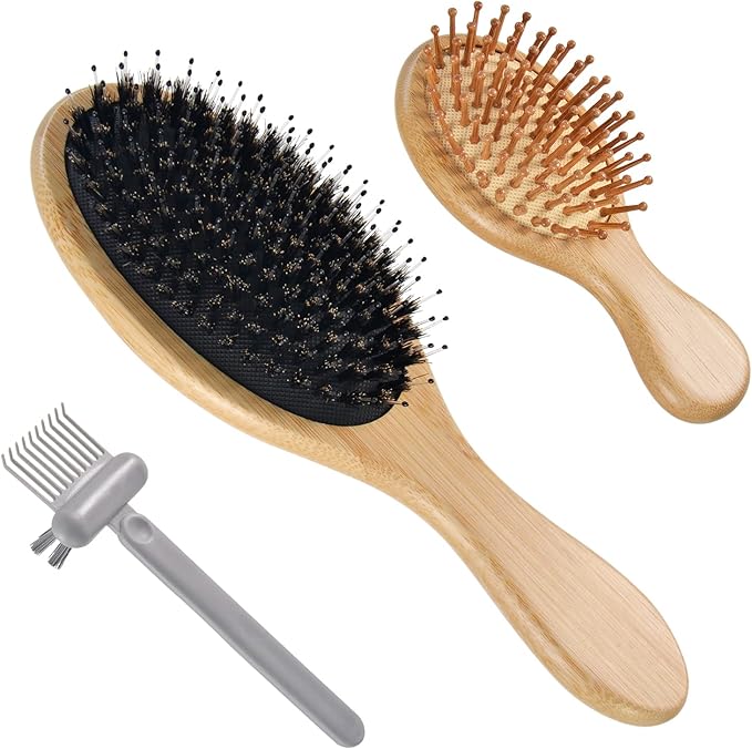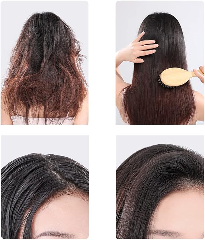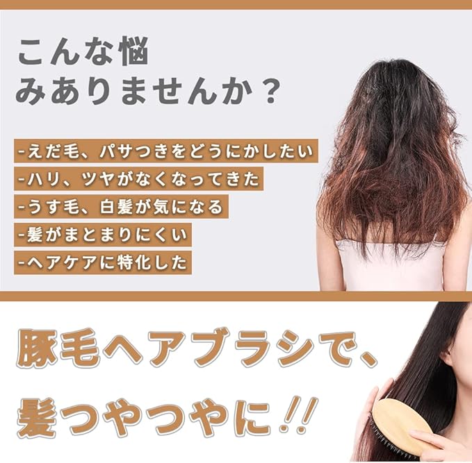 【静電気防止】豚毛に含まれた水分と油分で、静電気を防止できるので、キューティクルを傷めることなく、まとまりやすい、さらさら髪を実現します。