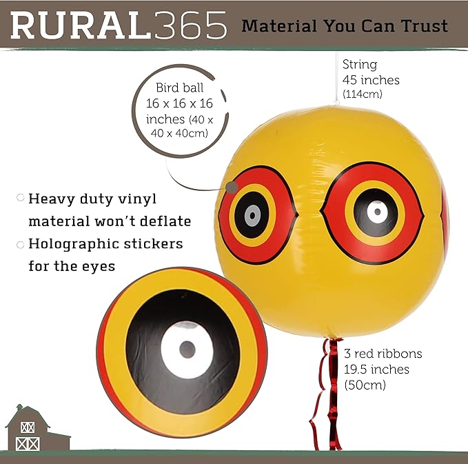 [信頼できる素材] : 過酷な天候にも耐えられる高耐久ビニール素材は、厄介な鳥類の問題を一年を通して解決します。 天候に関わらず、この鳥を怖がるアイボールは空気を抜くことがありません。