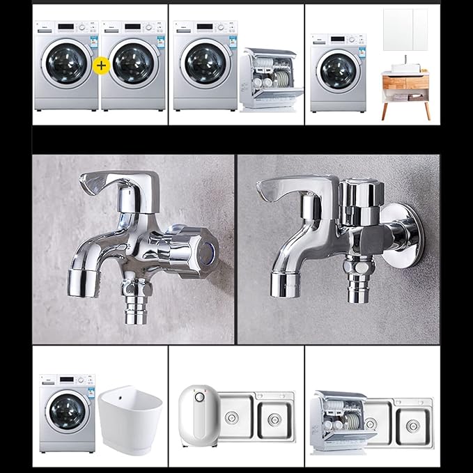 FQYEP 二股蛇口 双口水栓,洗濯機水栓,混合水栓,真鍮,洗濯機の蛇口,2口 分岐栓,洗濯機の蛇口 二股蛇口 屋外,クロムA