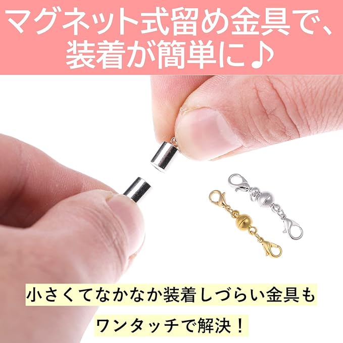手持ちのアクセサリーにマグネット式の留め金具を付ければ、装着しづらさを改善できます。強力な.を使用しているので、簡単に落ちてしまうこともありません。