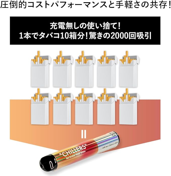 【2,000回 吸引可能】日本国内のポケットシーシャの中では最高スペックの2,000パフを採用し、約10箱分を吸引することが可能です! ※吸引回数は吸引方法により異なります。