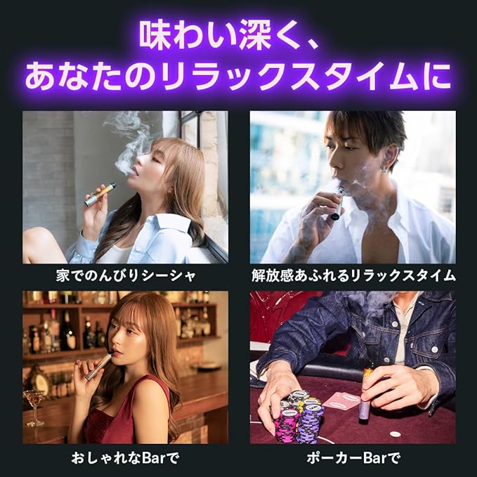 【臭さなし】特有の嫌な臭いが出ないので、洋服や壁などに臭いが移る心配もありません!シーシャバーと共同で研究開発したの香りをお楽しみいただけます。