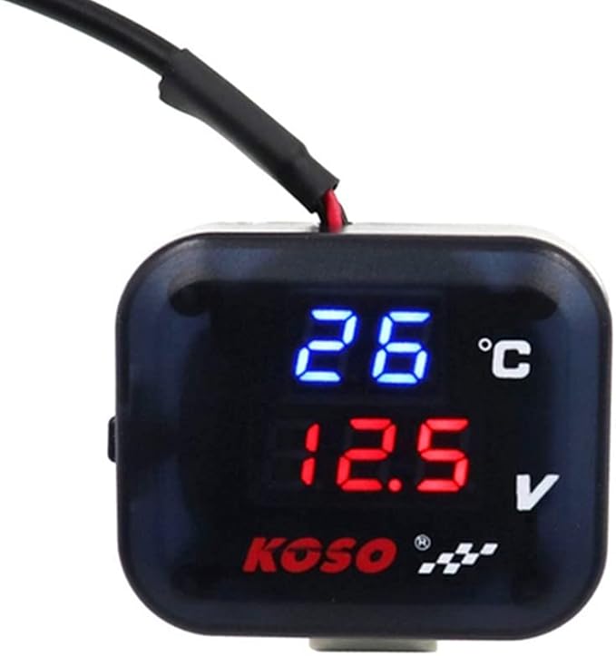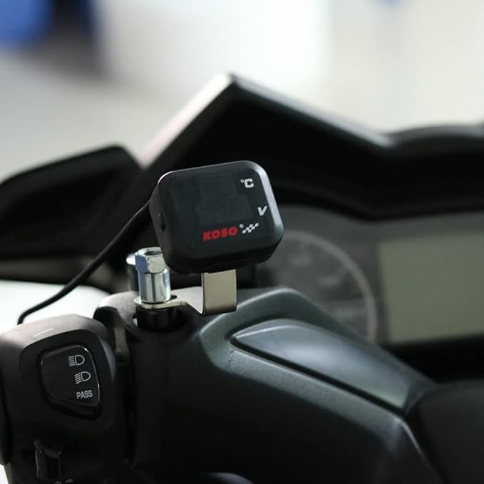 汎用 KOSOオートバイ計 電圧計 USB充電器 DC 12 V 3in1多功能メータ 温度指示器 電圧デジタル表示 小型電圧計 USB充電ポート付き 電圧計メーターDC 8.0~30.0 V 0~99℃ 電圧アラーム機能 温度警告機能 Vespa TMAX XMAX バイク オートバイアクセサリー | oioioichan