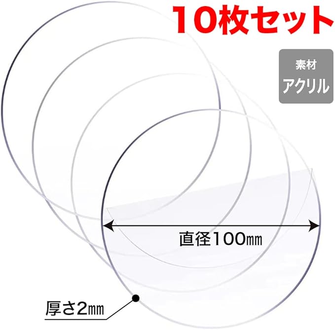 【商品詳細】本体10枚、サイズ:直径100mm、厚さ:2mm、素材:アクリル