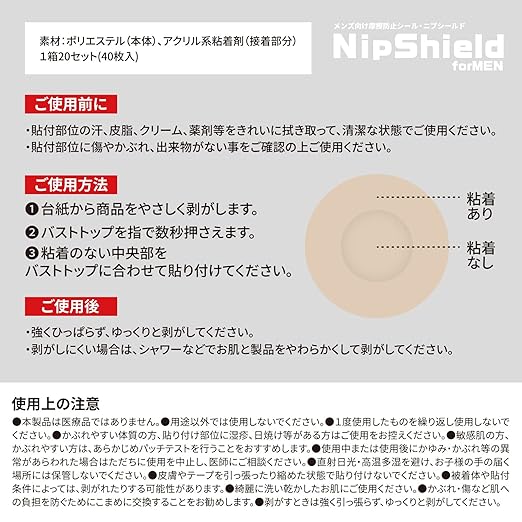 【台紙の有無によって2WAY使用可能】シール真ん中の丸い台紙を残して、やや厚みを持たせることで、気になる乳首の突起を完全にカバーします。白い服や薄手の服を着ても目立ちません。また、台紙をすべてはがしてしっかり貼付することで、衣類の擦れが多いランニングやマリンスポーツの時にもはがれずに使用できます。汗をかいたり、水に濡れたりする場合には、この貼り方がおすすめです。