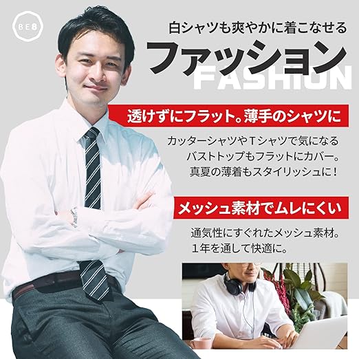 【肌になじむナチュラルな肌色】肌の色に近いカラーだから白いシャツを着ても目立ちません。薄手の衣類でも透けないので、普段のファッションはもちろん、ビジネスシーンでのエとしても大活躍します。