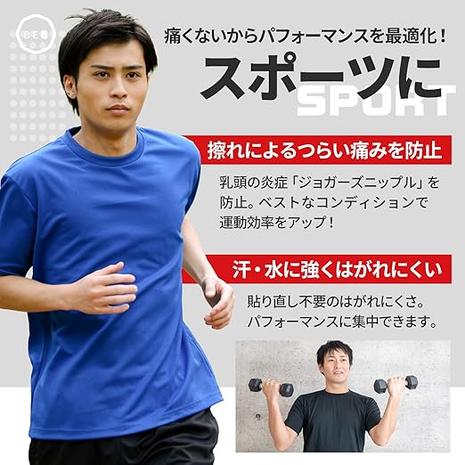 【スポーツ時の乳頭の擦れによる不快感や痛みから解放】乳首の摩擦防止効果によって、不快感や痛み、かゆみなどから解放され、快適なコンディションで、パフォーマンスに集中できます。