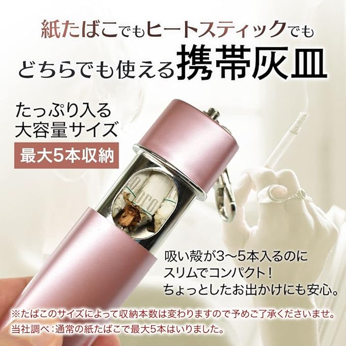 【紙でもスティックでもどちらでも使える】光沢のある素材でおしゃれでかっこいい携帯灰皿です。加熱式用のヒートスティックや紙巻たばこの吸い殻入れに!最大5本収納可能な大容量な灰皿です。