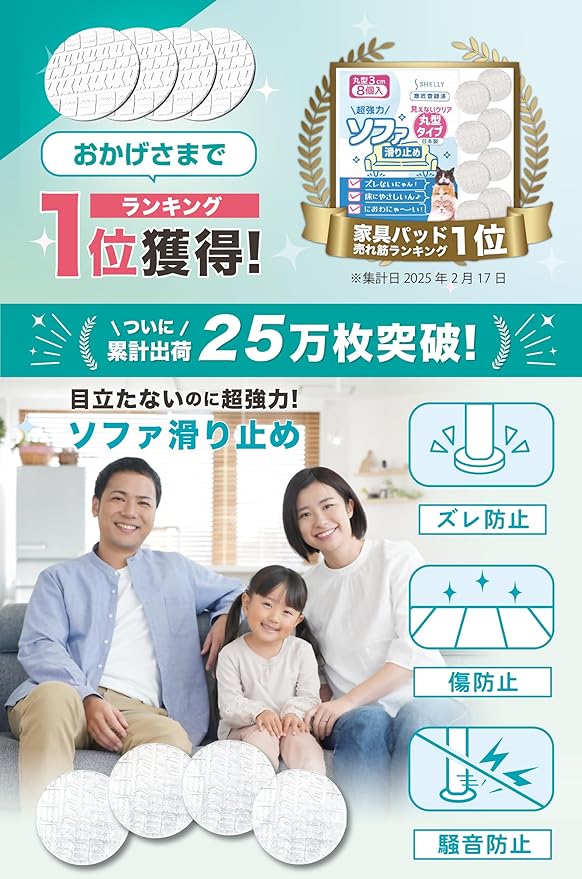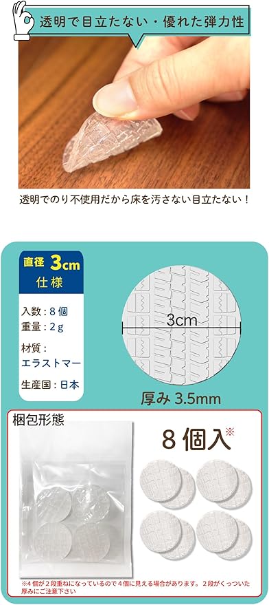 ソファ 滑り止め 見えない 超強力 ソファー 滑り止め 丸型 クリア 直径 3センチ 8個 日本製 ソファ滑り止め ベッド滑り止め テーブル滑り止め ソファ 足 傷防止 ズレ防止 防音 床暖房 ソファ 滑り止め 最強 3cm シェリー Shelly | oioioichan