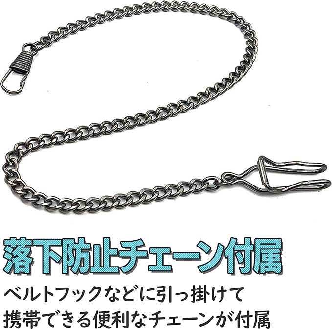 落下防止に役立つチェーンが付属:こちらの商品にはケースと接続して、ポケットやベルトフックなどに引っ掛けて携帯できる便利なチェーンが付属しています。作業中の利便性を高めて、落下による紛失も防いでくれます。