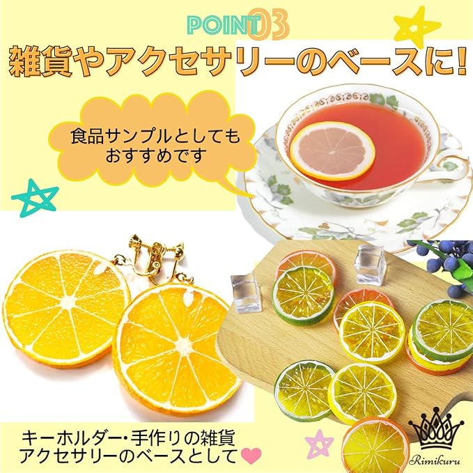 雑貨やアクセサリーのベースに:キーホルダーなどの手作りの雑貨やアクセサリーのベースとしても使えるレモンスライス サンプルになります。携帯のデコパーツとして可愛くしたりすることもできます。