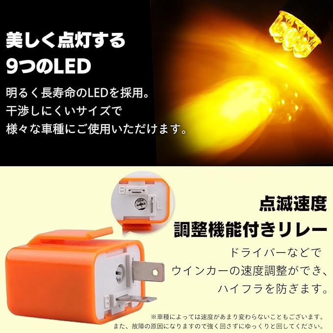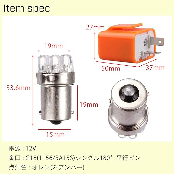 【付属内容】 LEDバルブ : 4個 オレンジ(アンバー)発光 リレー : 1個 (オレンジ or ブラック)