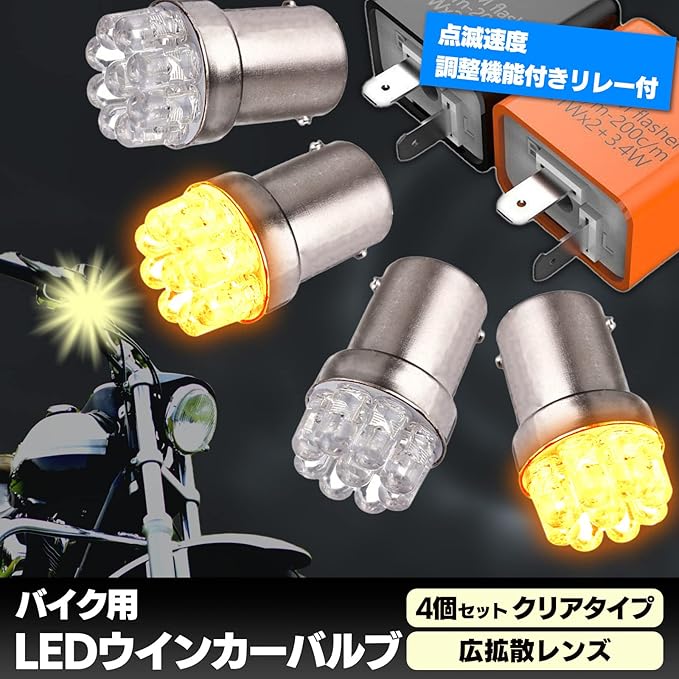 Meliore バイク LED クリア ウインカー アンバー 4個 セット IC リレー オレンジ 付き 2ピン ハイフラ 防止 バルブ ステルス 12V 汎用 G18 速度 調整 広角 拡散 | oioioichan