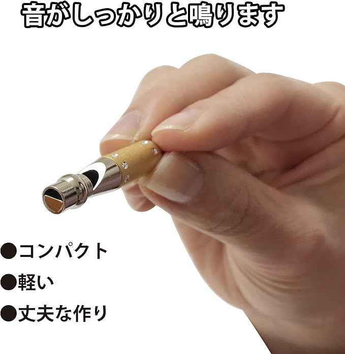 【コンパクトで携帯に便利】軽くて、コンパクトで、丈夫な作り。また、口を膨らませてフッと一息で音がしっかりと鳴ります。リングやカラビナがついているので、車のキーと一緒に携帯できたり、キャンプや登山・ハイキング時などリュックにひっかけて容易に持ち歩くことが可能です。