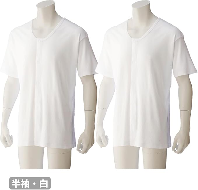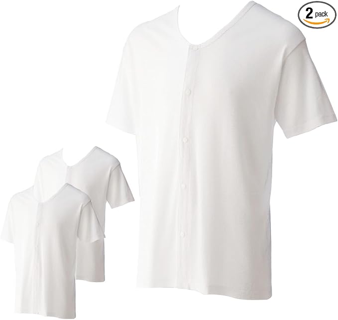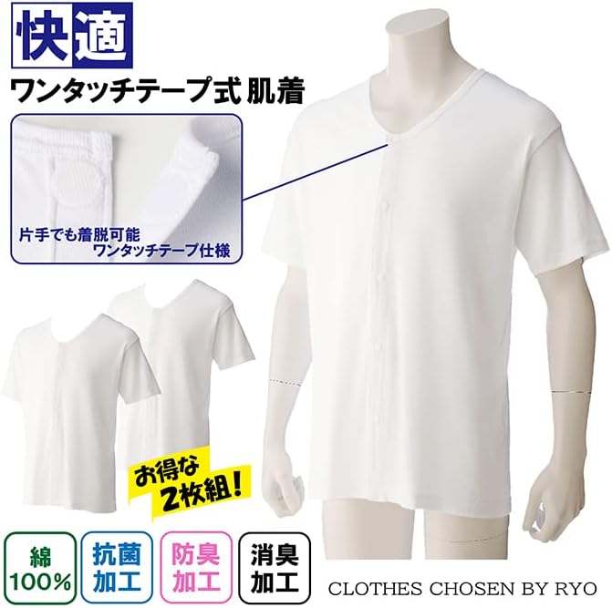 [RYO...] 【2枚組】介護肌着 前開き 男性 半袖 ワンタッチ肌着 ワンタッチテープ 抗菌防臭 消臭加工 紳士 メンズ 介護下着 大きいサイズ 2枚セット 綿100% S M L LL 3L (S, 白 2枚組) | oioioichan
