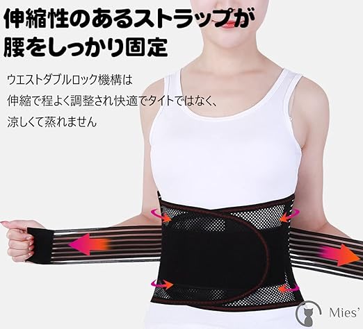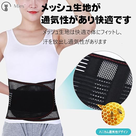 【軽量&通気性】薄手のメッシュ素材なので軽くて通気性に優れ、暑い時期の発汗が気になる方にも、オールシーズン快適に着用頂けます。 二段式のベルトで体に巻く事によってしっかり固定され、一般作業やスポーツなどの動きでもずれにくく、サポーターを着用したまま簡単に二段目のベルトによって締め付け加減を調整できます。