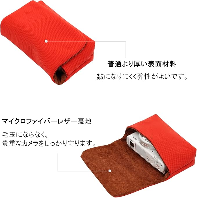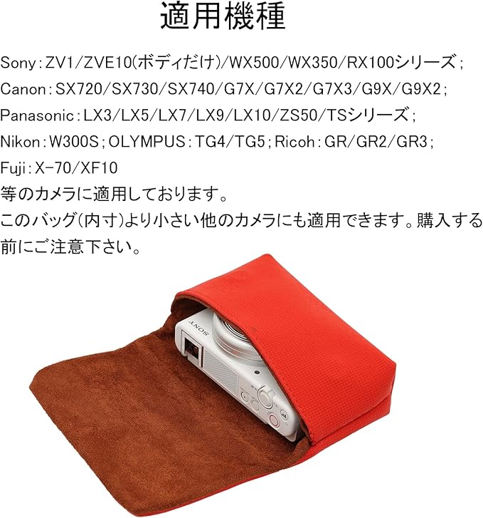 kinokoo デジタルカメラケース カメラバッグ コンパクトカメラ対応 ZV1/ZVE10/WX500/WX350/RX100/SX720/G7X/G9X/LX3/ZS50/TS/W300S/TG4/TG5/GR/GR2/GR3/X-70/XF10 SDカード収納ポケット付き(レッド) | oioioichan
