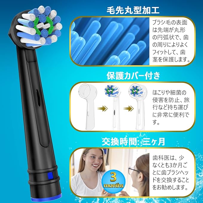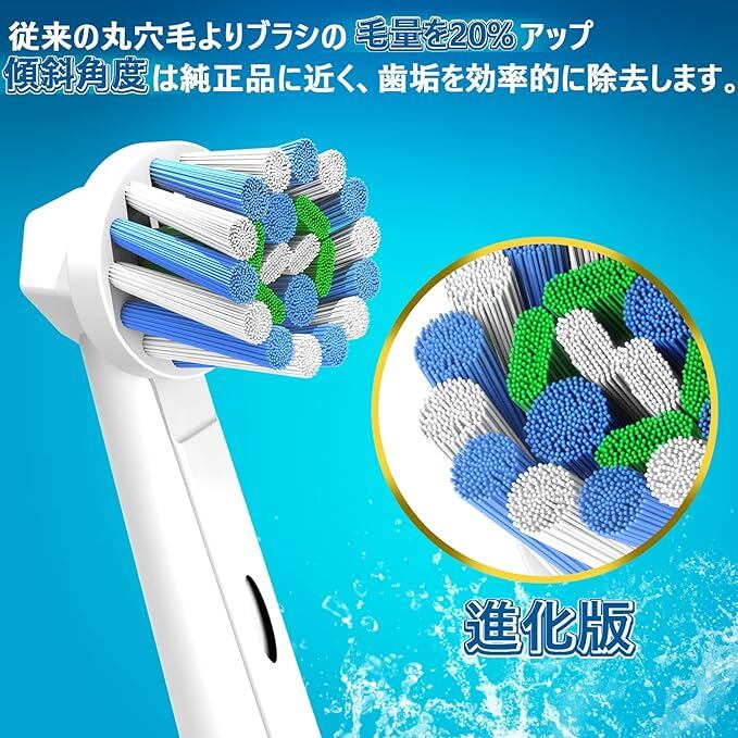 【高密度植毛&交換時間おすすめ】オーラルB 互換の かえ歯ブラシは最新の植毛技術を採用し、従来の丸穴毛よりブラシの毛量を20%アップ、毛が落ちる心配はありません。 歯科医は、少なくとも3か月ごとに歯ブラシヘッドを交換することをお勧めします。常にブラシヘッドを健康で効果的に機能できるようにしてください。