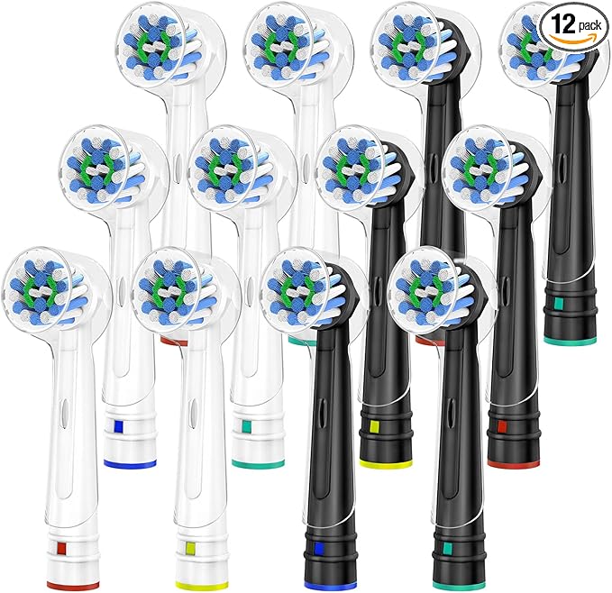Trustnice 電動歯ブラシ 替えブラシ ブラウン オーラルB 用の 互換ブラシ マルチアクションブラシ braun oral b 対応 歯ブラシ 替え 歯垢除去 家庭用 プレゼント 白+黒 12本 | oioioichan