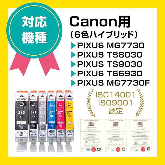 BCI-371XL BCI-370XL 互換インクカートリッジ 6色セット 大容量タイプ キャノン(Canon)対応 インクカートリッジ 371 370 BCI-371 BCI-370 互換インク TS9030 TS8030 MG7730F MG7730 MG6930 対応の 371 370 インク 残量表示機能 個包装 | oioioichan