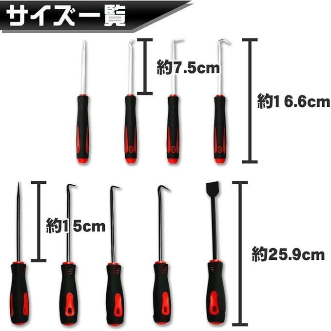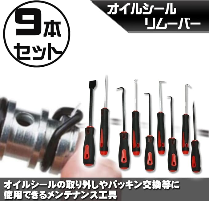 【セット内容】オイルシールリムーバー 9種 【サイズ】詳細は画像をご確認ください。 【材質】クロムバナジウム合金