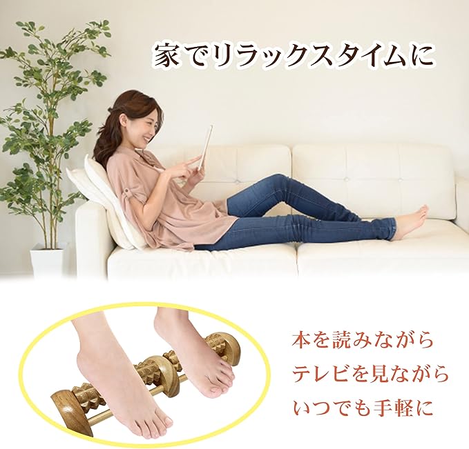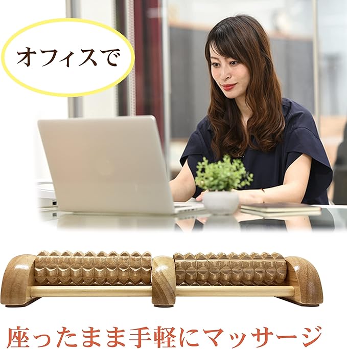 【木のぬくもりが優しいローラー】木製なので季節を問わず、「木」のぬくもりを感じながら使えるローラです。オフィスに置いて足をリラックスさせながら仕事をしたり、在宅勤務時にもコロコロさせながら使うことができます。