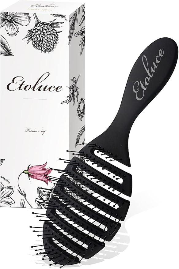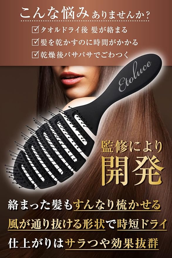 Etoluce(エトルーチェ) BeautyDry【トップスタイリスト監修】ドライブラシ ヘアブラシ くし 頭皮 ヘアドライ専用 スケルトンブラシ 濡れた髪も絡まない コーム (Black) デタングリングブラシ | oioioichan