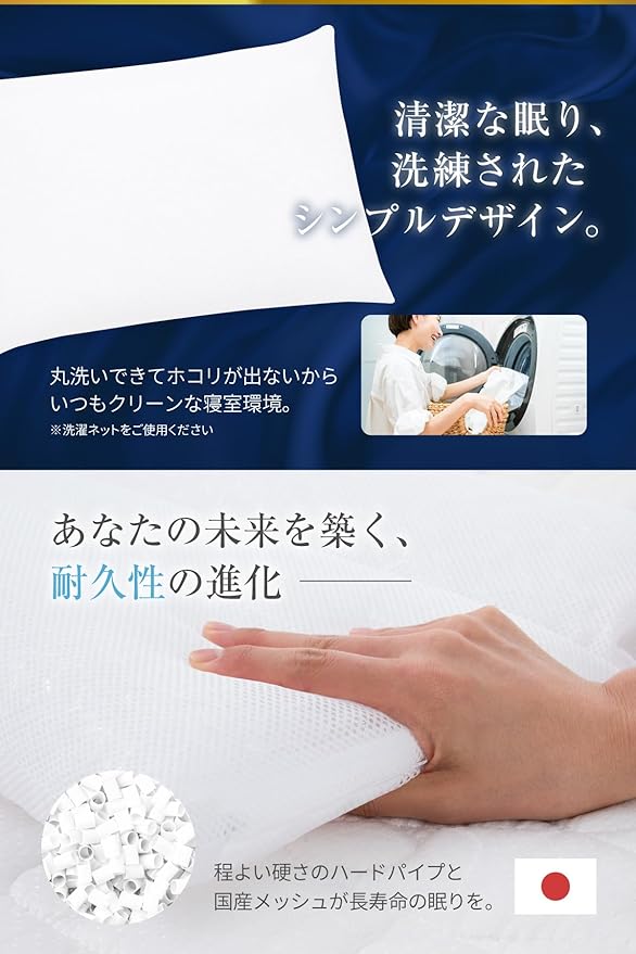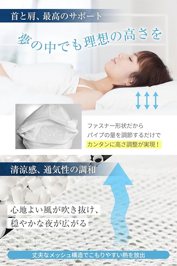 中身のハードパイプは数十種類から選び抜いた厳選された絶妙のやわらかさで作られた素材。通気性に優れています。ホコリが出ないのでダニやカビ対策にも最適です。