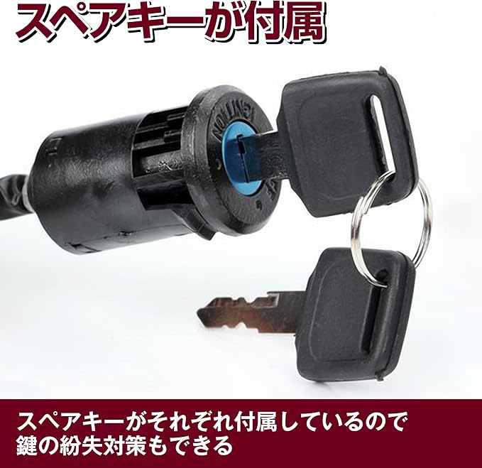 スペアキーが付属:こちらのキーシリンダーには、スペアキーがそれぞれ付属しているので、鍵の紛失対策もすることができます。バイクのメンテナンスの際にぜひ活用を検討してみてはいかがでしょうか。