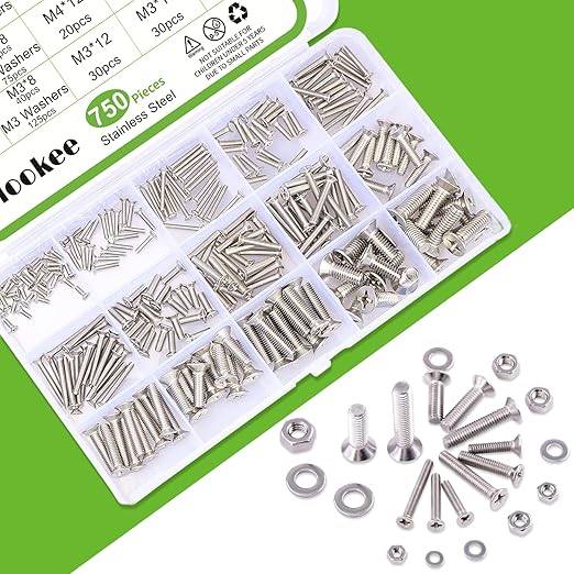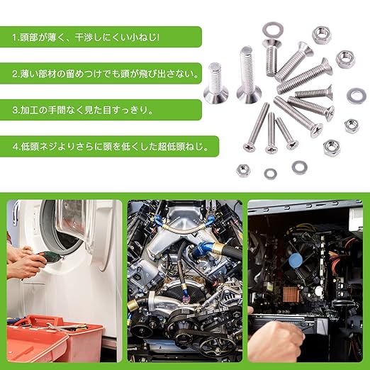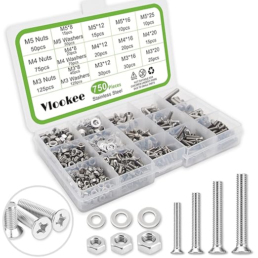 Vlookee 750本入 ねじ セット M3 M4 M5 超低頭 皿ねじ SUS304 ステンレス 十字穴付き 皿ねじ 皿ビス さら小ねじ ネジ 精密機器用なべ小ねじ ナット、ワッシャー、収納ボックス付き | oioioichan