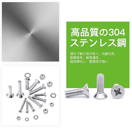 【皿ビス 材質】本製品は高品質のSUS304ステンレスを使用しており、頑丈で耐久性があり、抗酸化性、耐腐食性、耐高温性、優れた性能と高い靭性という特徴を持っています。絶妙な外観と長いサービス寿命。