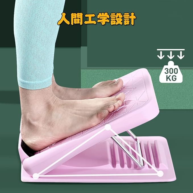 レベルに合わせて7段階の角度調節:角度調節は7段階調節可能です。自分のカラダの硬さに合わせた姿勢でストレッチが行えます。低い傾斜から始め、徐々に傾斜度を上げ、ゆっくりと足首を伸ばします。突起が足裏を刺激し、筋肉の疲れを軽減できます。表面の凸凹が足裏に程よく刺激を与えます
