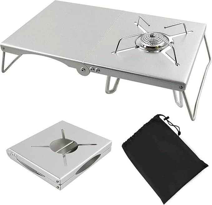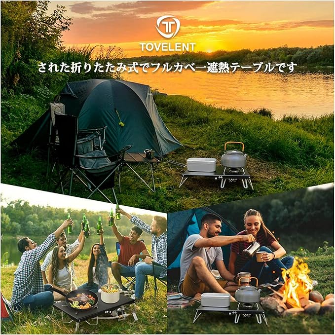 遮熱テーブル 遮熱板テーブル 遮熱板 用 テーブル コンパクト 軽量 折り畳み 一台多役 5種類バーナー対応 アルミ合金製 二つ折りテーブル 専用収納袋付き 専用収納袋付き トラベル アウトドア ソロキャンプ用(シルバー) | oioioichan