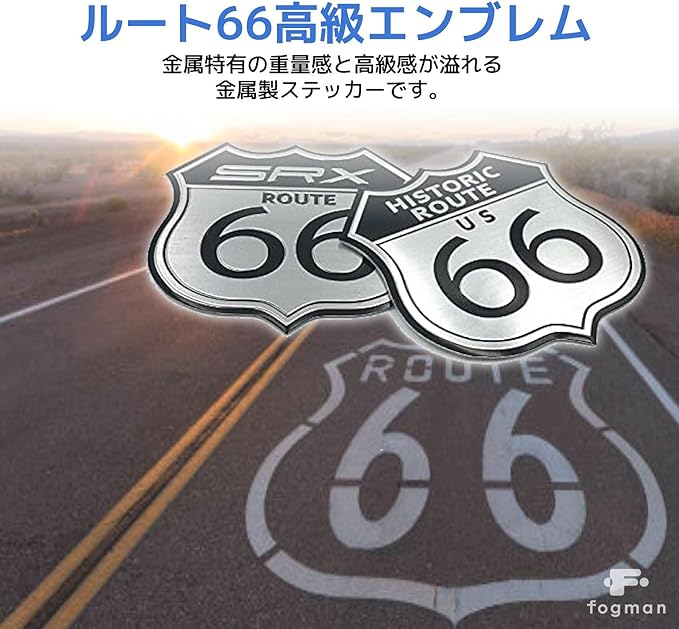 世界的に有名なアメリカンドライブのシンボルである国道66号線のメタルステッカーになります。バリエーションタイプ:SRX ROUTE66 HISTORIC ROUTE66
