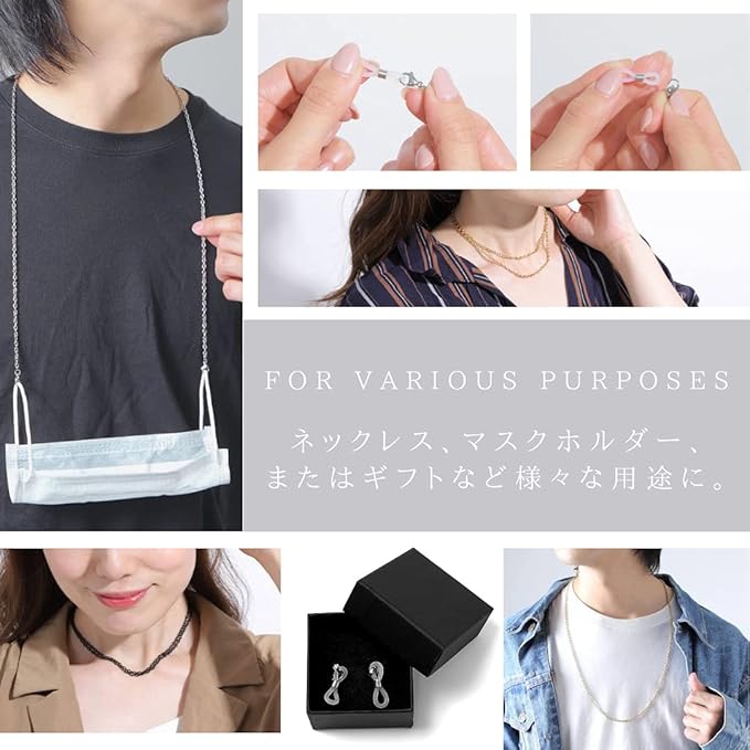 用途:メガネチェーンとしてはもちろん、シリコンループ部分を取り外すことで、用ストラップやネックレスチェーンとしても活用できます。シリコンループは簡単に着脱可能です。