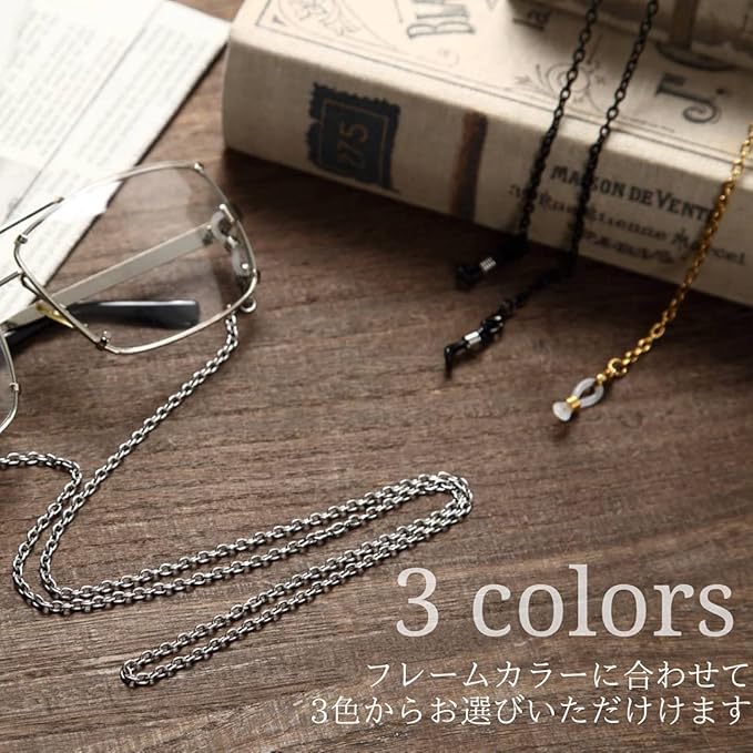 デザイン:ノーマルなOワードチェーン、ラウンドビーズチェーンの2タイプとも、シンプルかつメガネフレームにマッチしやすい3カラー展開です。男女兼用でご使用いただけます。