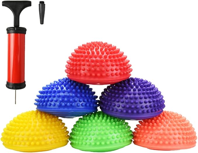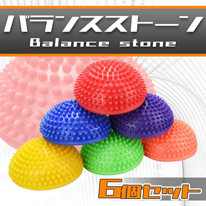 【セット内容】半球バランスボール 6個 空気入れ 1個 【カラー】オレンジ・レッド・グリーン・パープル・イエロー・ブルー 【サイズ(約)】直径:17cm 高さ:8cm