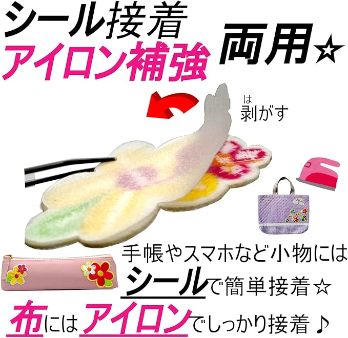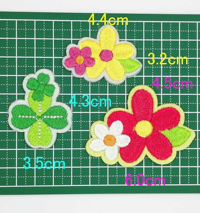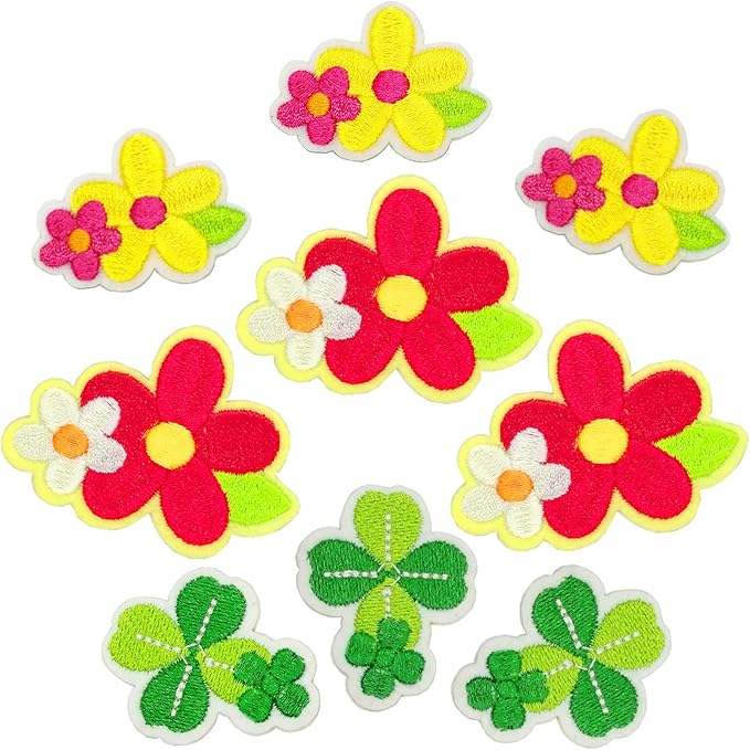 シール&アイロン ワッペン 花 四つ葉のクローバー 各種3枚 合計9枚セット