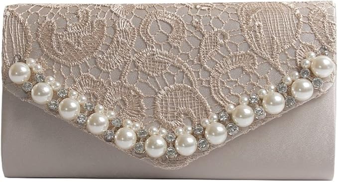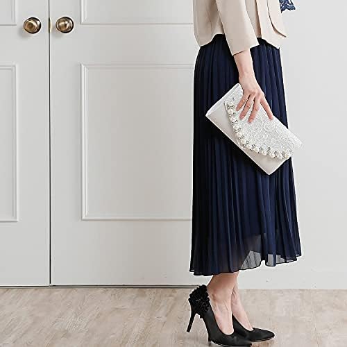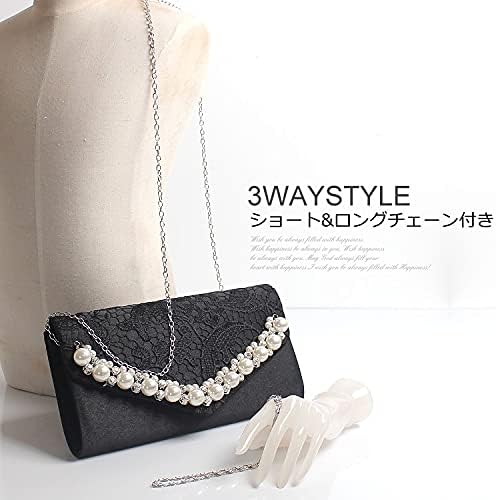 [Luxe mimosa] リュクスミモザ パーティーバッグ 結婚式 クラッチバッグ レディース 大きめ スクエア レース パール ショルダー ショートチェーン付き 同窓会 謝恩会 二次会 お呼ばれ | oioioichan